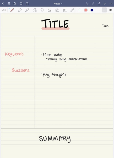 เป็นส่วนที่ใหญ่ที่สุดของหน้ากระดาษใช้พื้นที่ประมาณ 70% ส่วนนี้จะใช้จดเลคเชอร์ในขณะที่กำลังเรียนอยู่ ทั้งจากการฟังบรรยาย ข้อมูลบนไวท์บอร์ด และสไลด์ประกอบการเรียน