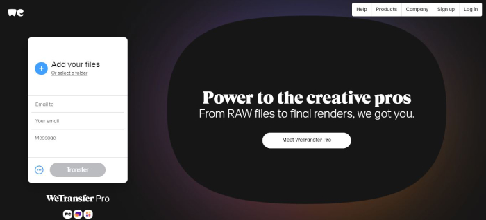 Wetransfer เว็บไซต์ฝากไฟล์ระยะสั้น เปิดให้ผู้ใช้งานอัปโหลดไฟล์เก็บไว้ได้ฟรี เป็นเวลา 7 วัน อัปโหลดไฟล์ได้ใหญ่สุด 2 GB เหมาะสำหรับการฝากไฟล์เพื่อส่งต่อ สามารถใช้งานได้แบบไม่ต้องสมัครสมาชิก หรือลงทะเบียนใดๆ เพียงเข้าเว็บไซต์ อัปโหลดไฟล์ ใส่อีเมลผู้รับ จากนั้นกด Transfer หรือจะขอรับ link เพื่อแชร์ไฟล์แบบออนไลน์ก็ได้ วิธีนี้ถือว่าสะดวก สำหรับการส่งต่อไฟล์ที่มีขนาดใหญ่เกิน 25 MB